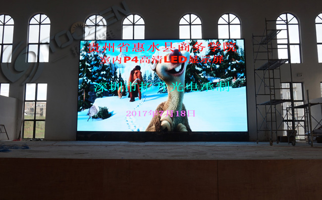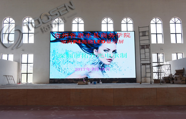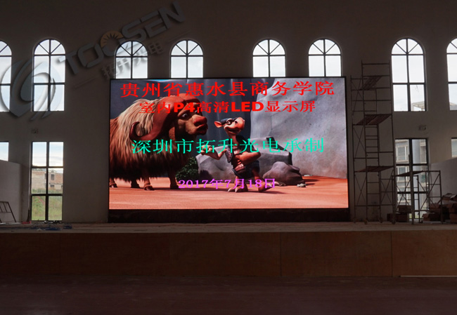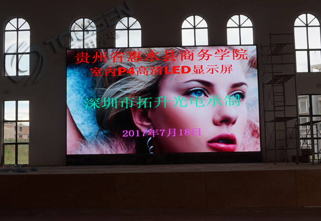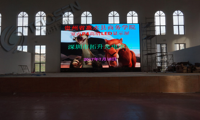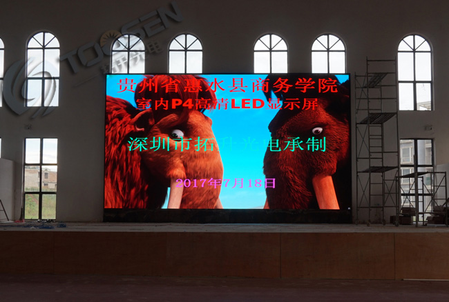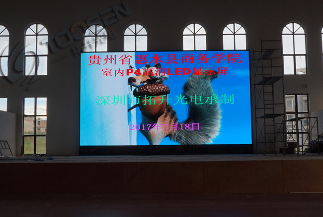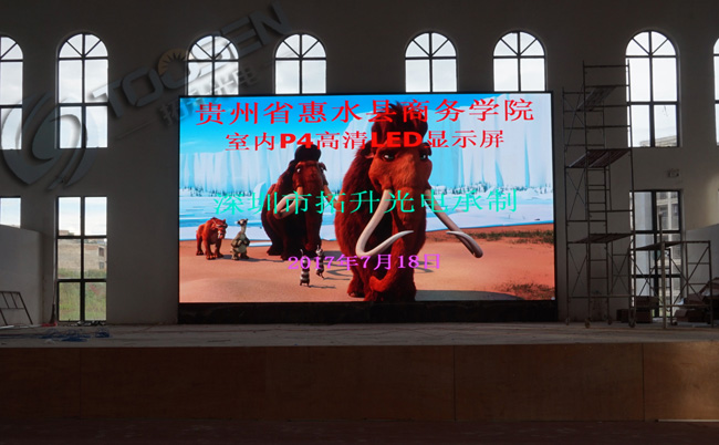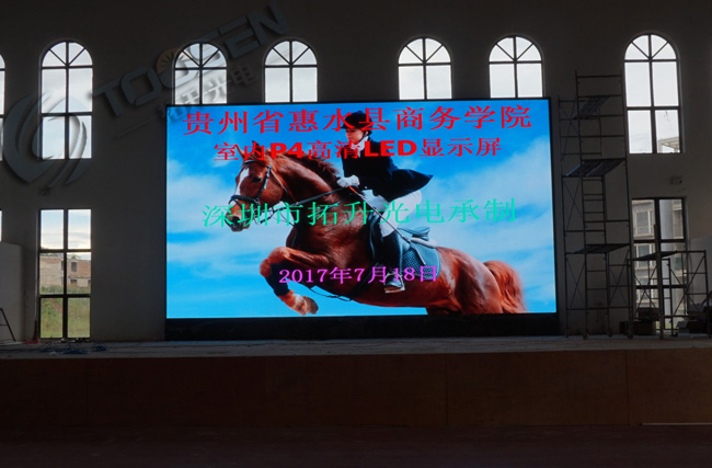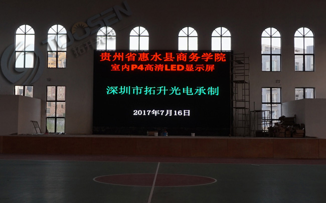 拓升光電承接財(cái)經(jīng)學(xué)院的P4室內(nèi)全彩LED顯示屏3塊屏幕,體院館第一塊屏已經(jīng)安裝完畢,其他兩塊屏還有陸續(xù)安裝中..........
