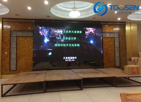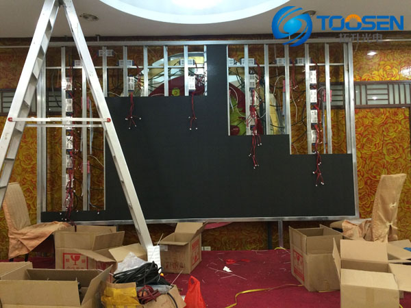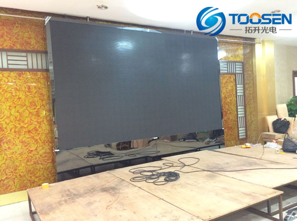 現(xiàn)在酒樓的婚慶、慶典、宴會業(yè)務(wù)不斷增多,客戶決定采用全彩LED顯示屏作為舞臺背景,代替之前的投影儀。